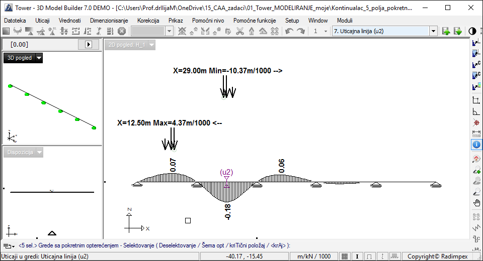 Пример за анализу критеријума употребљивости мостовске конструкције система линијског континуалног носача преко пет поља