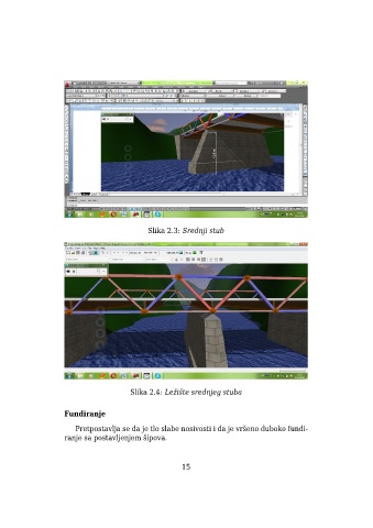 Slika 2.3: Srednji stub Slika 2.4: Ležište srednjeg stuba Fundiranje Pretpostavlja se da je tlo slabe nosivosti i da je vršeno duboko fundi- ranje sa postavljenjem šipova. 15