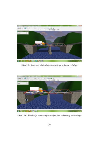 Slika 2.9: Raspored sila kada je opterećenje u datom položaju Slika 2.10: Simulacija realne deformacije usled pokretnog opterećenja 20